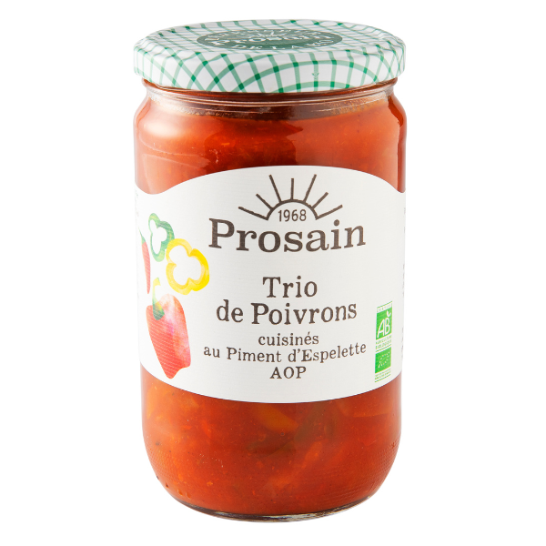 Avis aux amateurs de poivrons ! Découvrez notre délicieux Trio de Poivrons bio, une recette inspirée de la cuisine du Sud-Ouest. De jolies lanières de poivrons rouges, jaunes et vertes à la texture délicieusement fondante, cuisinées avec des tomates et des petits oignons, le tout délicatement relevé par la juste dose de piment d’Espelette AOP.