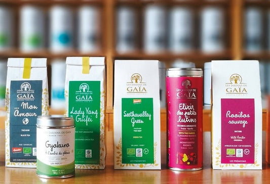 Thé, rooibos et infusions bio depuis 1994Les Jardins de Gaïa sont des pionniers du thé bio et équitable en France développés dans le respect de l’Homme et de l’environnement. Avec plus de 650 références de thé et tisanes, il y en a pour tous les goûts. Tous les thés et tisanes sont issus de l’agriculture biodynamique. Les méthodes d’exportation respectent au maximum l’environnement et l’humain en préservant les emplois locaux.