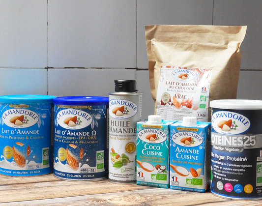 Boissons végétales sous différentes formes (poudre, liquide, vrac...)La Mandorle propose depuis plus de 30 ans des boissons bio-végétales à base de fruits secs. Reconnue « Spécialiste du lait d’amande de haute valeur nutritionnelle », elle offre des boissons et des préparations pour cuisine et petit déjeuner, sans lait sans gluten et sans soja destinées aux personnes recherchant des alternatives au lait animal, et aux personnes soucieuses de leur bien-être ainsi que de nos environnements.