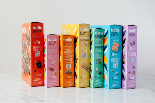 Céréales bio du petit-déjeunerGranola, porridge, céréales : Turtle se veut une entreprise qui fait du bien. Qui vous fait du bien à vous, en vous proposant des produits sains et de qualité. Mais aussi qui fait du bien tout au long de son chemin avant d’aboutir dans votre bol.