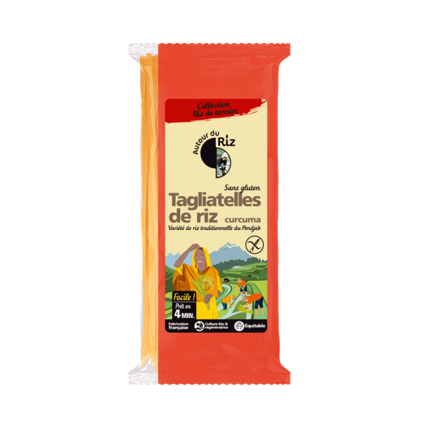 Authentiques tagliatelles thaïes de riz blanc biologique parfumées au curcuma