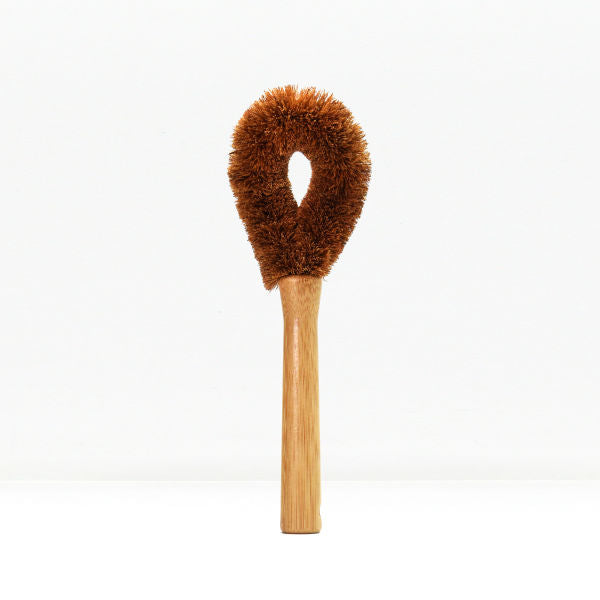 La brosse à vaisselle est composée d'un manche en bambou, de poils de noix de coco et d'acier inoxydable. Elle est dotée d'une tête courbée de forme ronde, conçue pour atteindre facilement toutes les zones. La haute densité des poils de noix de coco permet un nettoyage en profondeur. Le manche en bambou a une forme ergonomique pour une prise en main ferme et confortable.